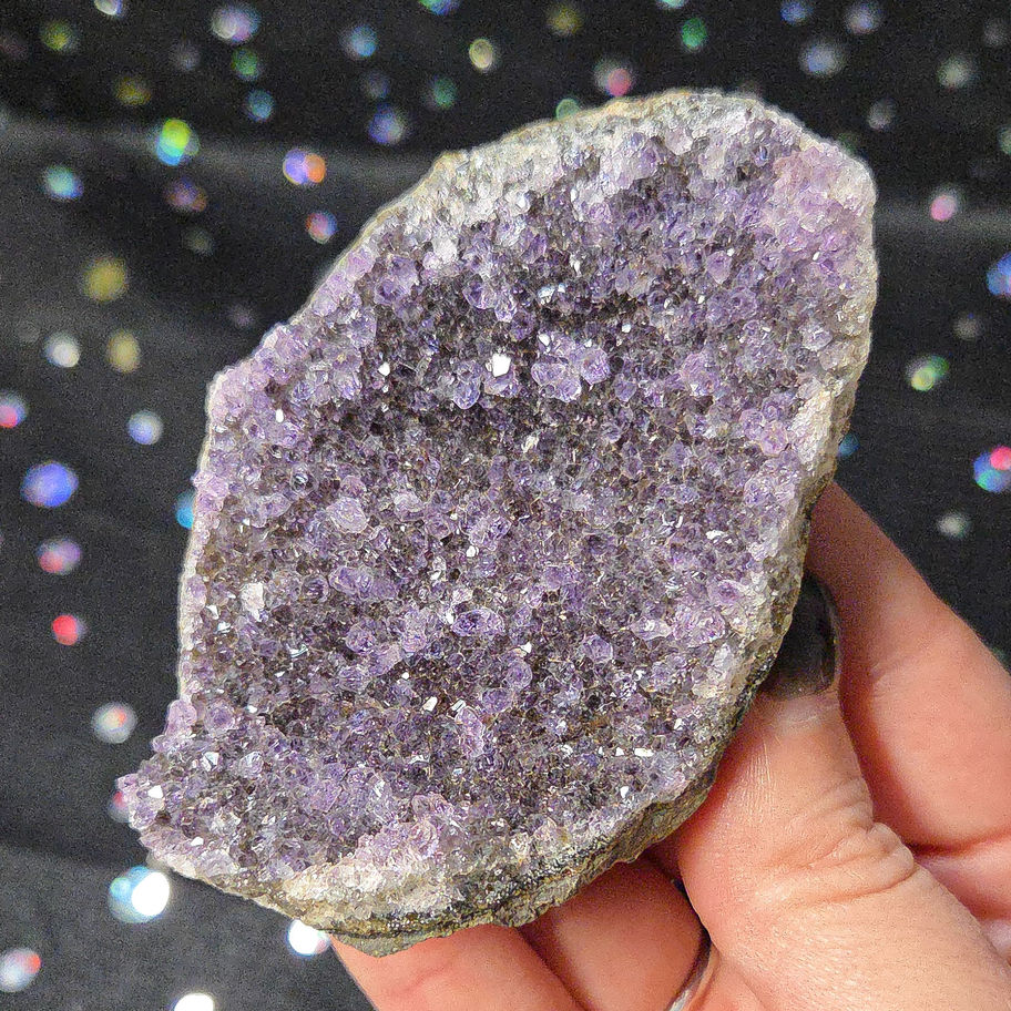 It is often used as a protective stone against negative energies. Placing an Amethyst druzy cluster near entrances or in workspaces is thought to create a spiritually clean environment.
